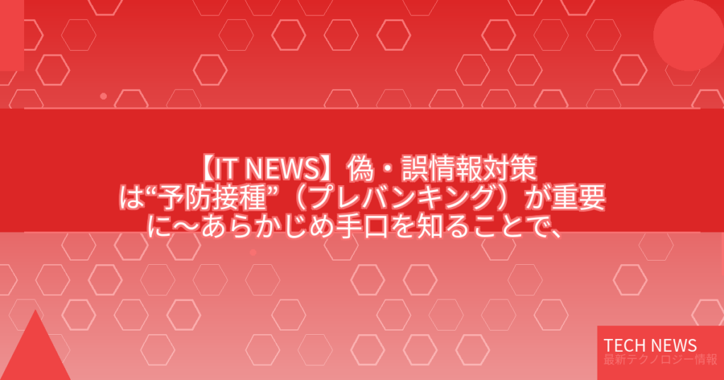 【IT NEWS】偽・誤情報対策は“予防接種”(プレバンキング)が重要に~あらかじめ手口を知ることで、拡散行動は減少する 総務省、偽・誤情報等への対策技術開発実証事業の成果発信イベント開催
