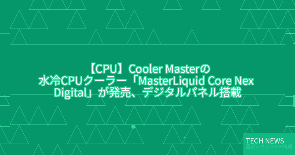 ポンプカバー部にデジタルパネルを搭載したCooler Masterの簡易水冷クーラー「MasterLiquid Core Nex Digital」が発売された。
