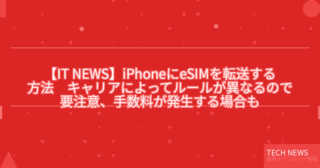 【IT NEWS】iPhoneにeSIMを転送する方法 キャリアによってルールが異なるので要注意、手数料が発生する場合も