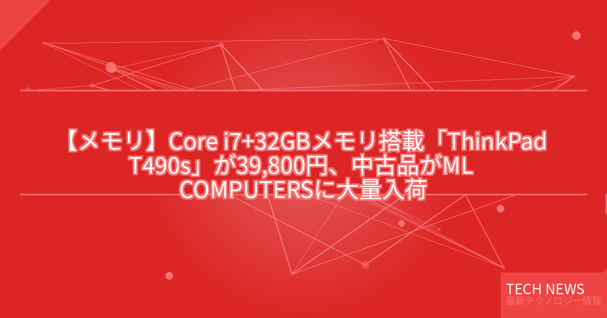 記事タイトル:Core i7+32GBメモリ搭載「ThinkPad T490s」が39,800円、中古品がML COMPUTERSに大量入荷