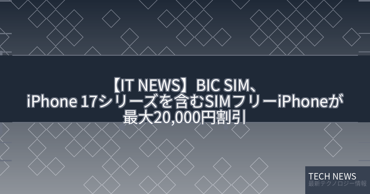 【IT NEWS】BIC SIM、iPhone 17シリーズを含むSIMフリーiPhoneが最大20,000円割引