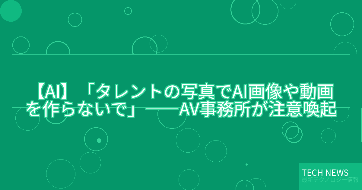 ・元記事タイトル:「タレントの写真でAI画像や動画を作らないで」――AV事務所が注意喚起