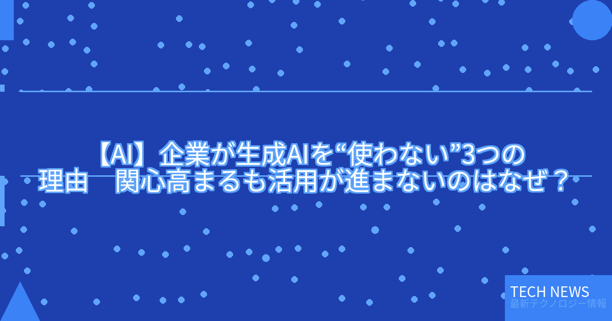 ・元記事タイトル:企業が生成AIを“使わない”3つの理由 関心高まるも活用が進まないのはなぜ?