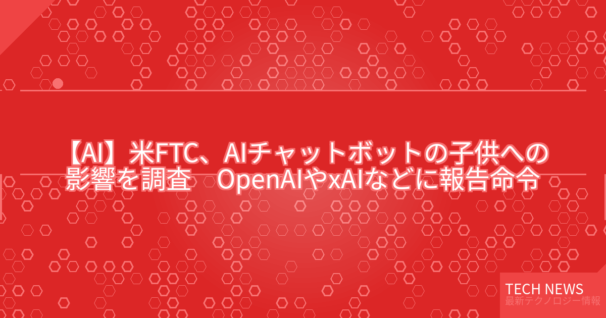 ・元記事タイトル:米FTC、AIチャットボットの子供への影響を調査 OpenAIやxAIなどに報告命令