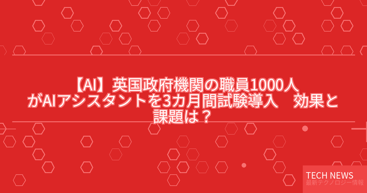 記事タイトル:英国政府機関の職員1000人がAIアシスタントを3カ月間試験導入 効果と課題は?