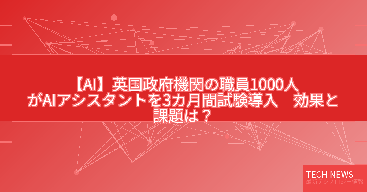 ・元記事タイトル:英国政府機関の職員1000人がAIアシスタントを3カ月間試験導入 効果と課題は?
