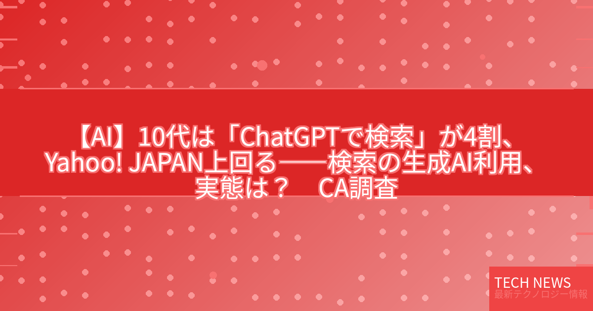 記事タイトル:10代は「ChatGPTで検索」が4割、Yahoo! JAPAN上回る――検索の生成AI利用、実態は? CA調査