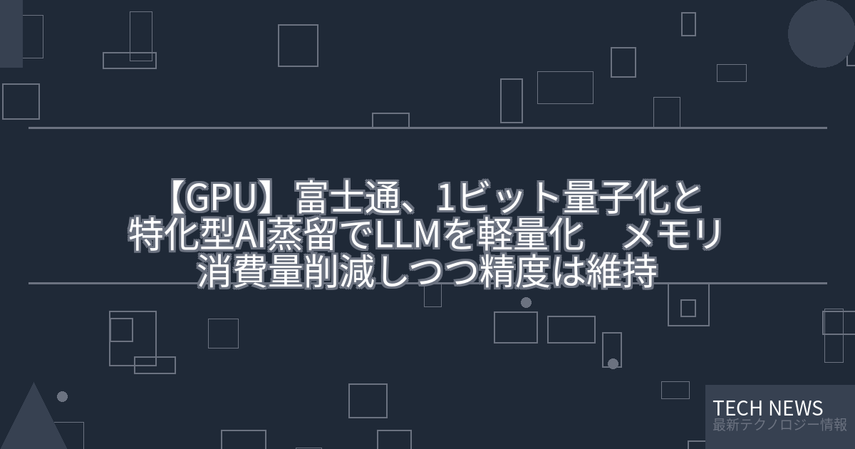 記事タイトル:富士通、1ビット量子化と特化型AI蒸留でLLMを軽量化 メモリ消費量削減しつつ精度は維持