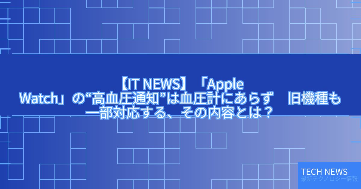 記事タイトル:「Apple Watch」の“高血圧通知”は血圧計にあらず 旧機種も一部対応する、その内容とは?