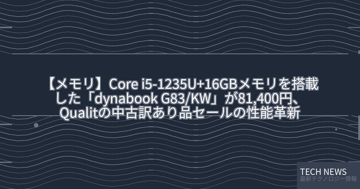 ・元記事タイトル:Core i5-1235U+16GBメモリを搭載した「dynabook G83/KW」が81,400円、Qualitの中古訳あり品セール