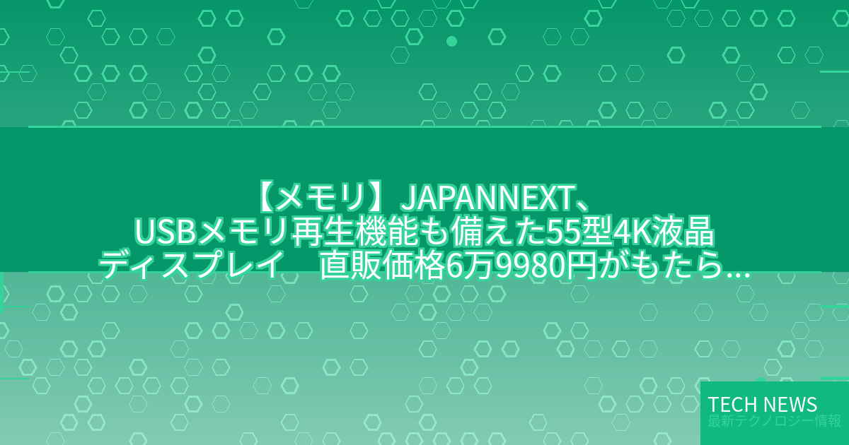 ・元記事タイトル:JAPANNEXT、USBメモリ再生機能も備えた55型4K液晶ディスプレイ 直販価格6万9980円