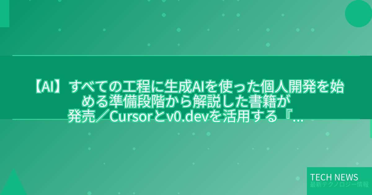 ・元記事タイトル:すべての工程に生成AIを使った個人開発を始める準備段階から解説した書籍が発売/Cursorとv0.devを活用する『AIと個人開発したくなったらまずCursorで要件定義だ!』【Book Watch/ニュース】