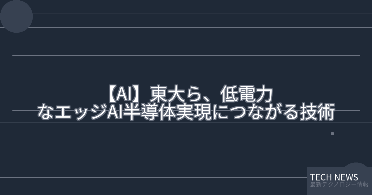 ・元記事タイトル:東大ら、低電力なエッジAI半導体実現につながる技術