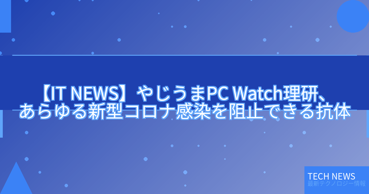 記事タイトル:【やじうまPC Watch】理研、あらゆる新型コロナ感染を阻止できる抗体