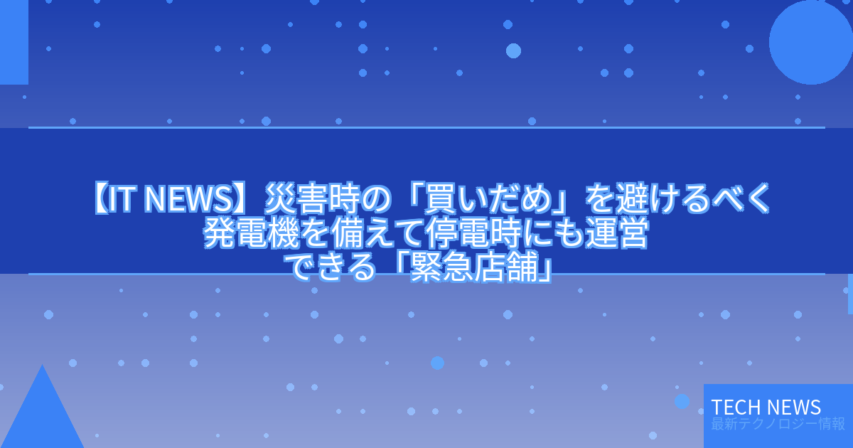 記事タイトル:災害時の「買いだめ」を避けるべく発電機を備えて停電時にも運営できる「緊急店舗」をデンマークのスーパーマーケットチェーンが設置