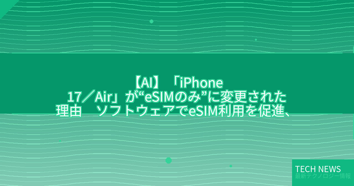 ・元記事タイトル:「iPhone 17/Air」が“eSIMのみ”に変更された理由 ソフトウェアでeSIM利用を促進、キャリア側の対応も進む