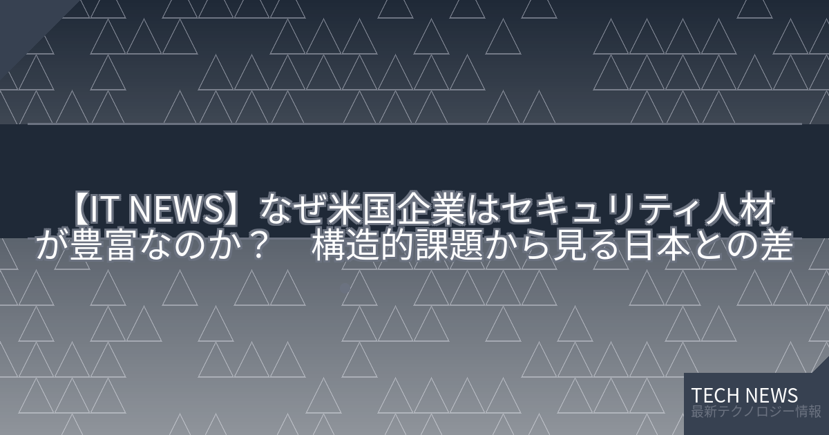 記事タイトル:なぜ米国企業はセキュリティ人材が豊富なのか? 構造的課題から見る日本との差