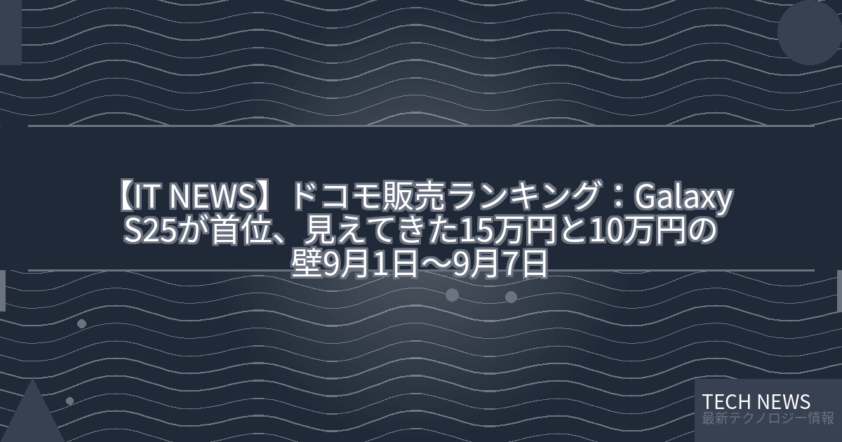記事タイトル:ドコモ販売ランキング:Galaxy S25が首位、見えてきた15万円と10万円の壁【9月1日~9月7日】