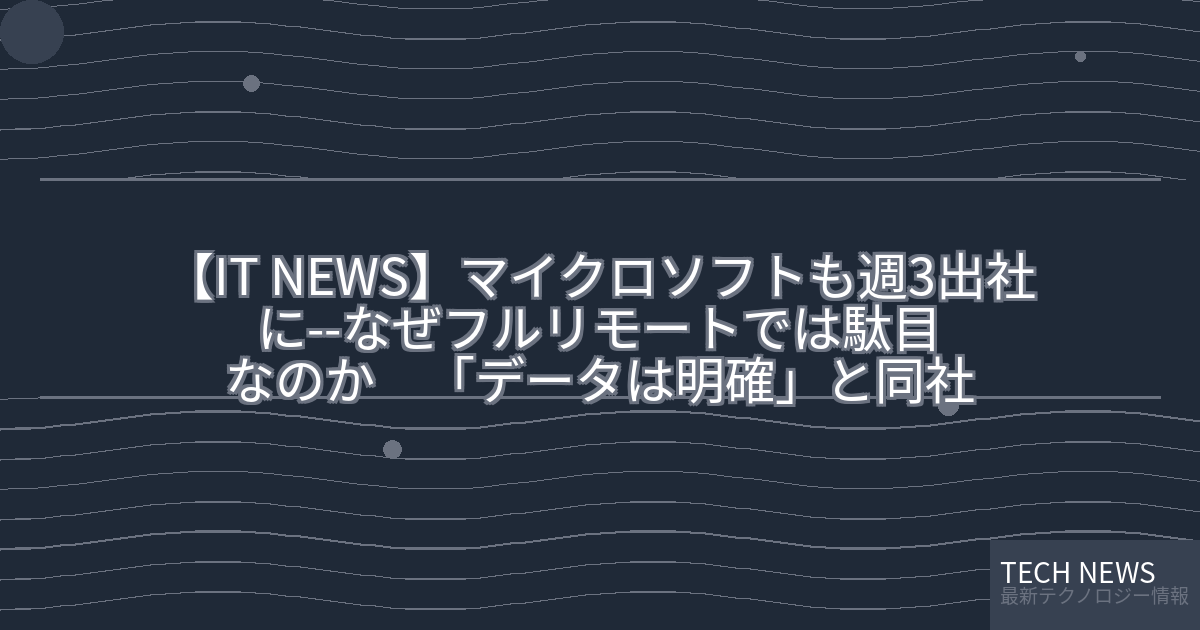 記事タイトル:マイクロソフトも週3出社に–なぜフルリモートでは駄目なのか 「データは明確」と同社