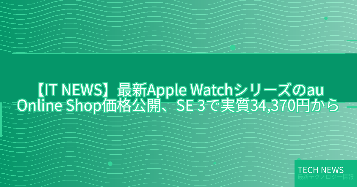 記事タイトル:最新Apple Watchシリーズのau Online Shop価格公開、SE 3で実質34,370円から