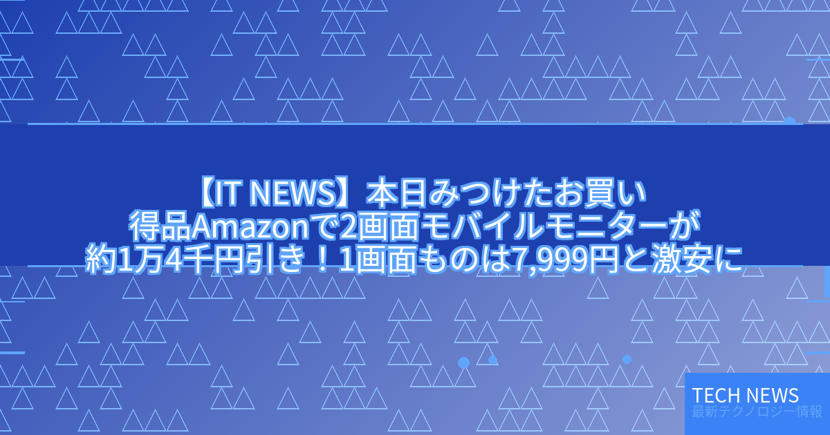 ・元記事タイトル:【本日みつけたお買い得品】Amazonで2画面モバイルモニターが約1万4千円引き!1画面ものは7,999円と激安に