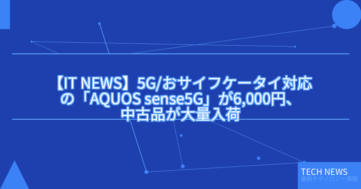 記事タイトル:5G/おサイフケータイ対応の「AQUOS sense5G」が6,000円、中古品が大量入荷
