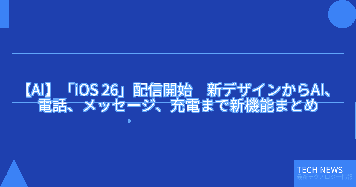 記事タイトル:「iOS 26」配信開始 新デザインからAI、電話、メッセージ、充電まで新機能まとめ