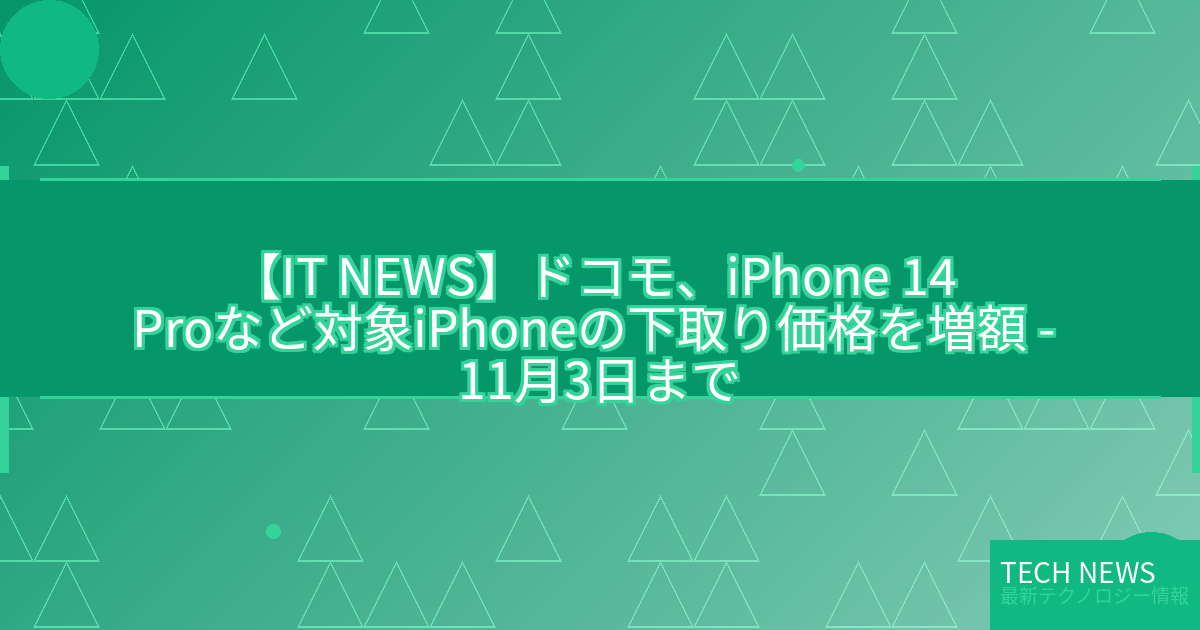 記事タイトル:ドコモ、iPhone 14 Proなど対象iPhoneの下取り価格を増額 – 11月3日まで