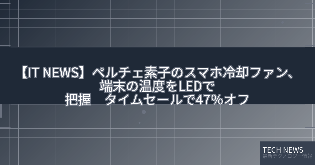 【IT NEWS】ペルチェ素子のスマホ冷却ファン、端末の温度をLEDで把握 タイムセールで47%オフ