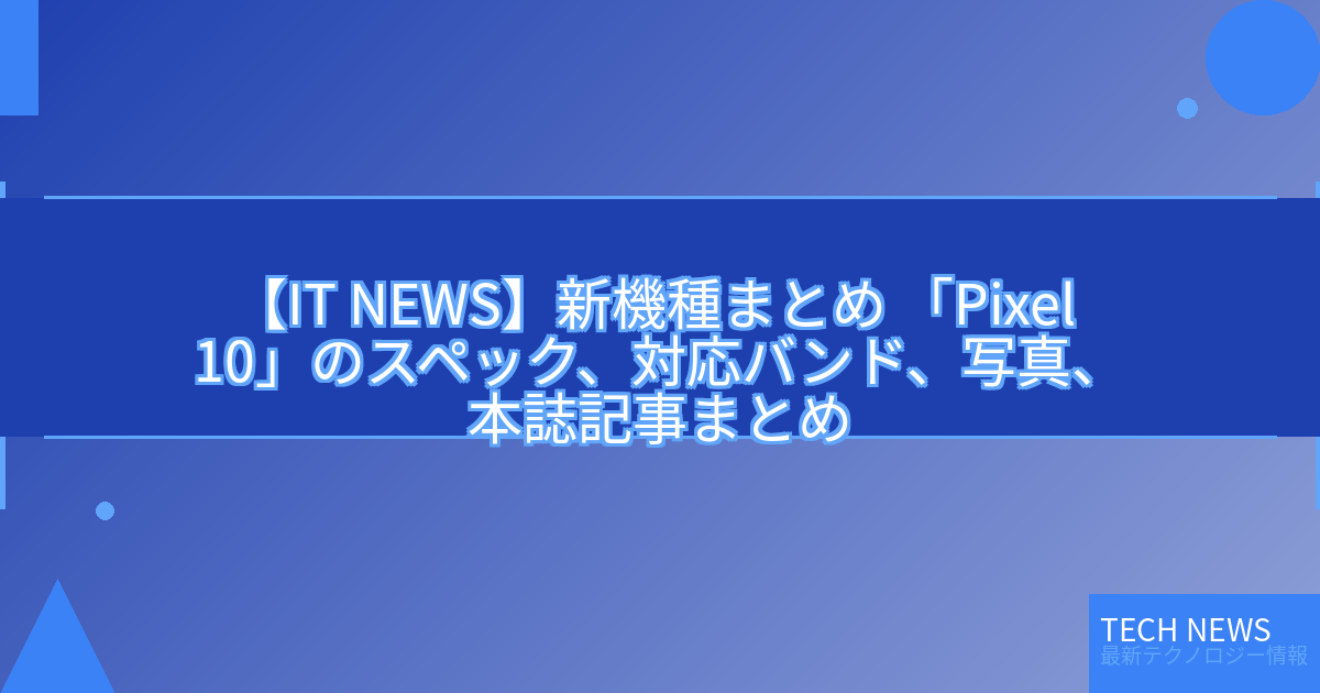 記事タイトル:[新機種まとめ] 「Pixel 10」のスペック、対応バンド、写真、本誌記事まとめ