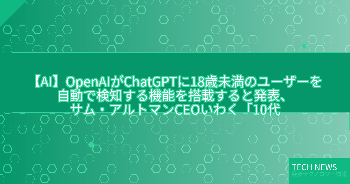 今回のニュースは、AI assistantの代表格であるOpenAI社のChatGPTに、18歳未満のユーザーを自動で検知する機能が搭載されることが発表されたものです。これは、AI技術の急速な進化に伴い、青少年への影響を懸念する声が高まる中での対応策といえます。