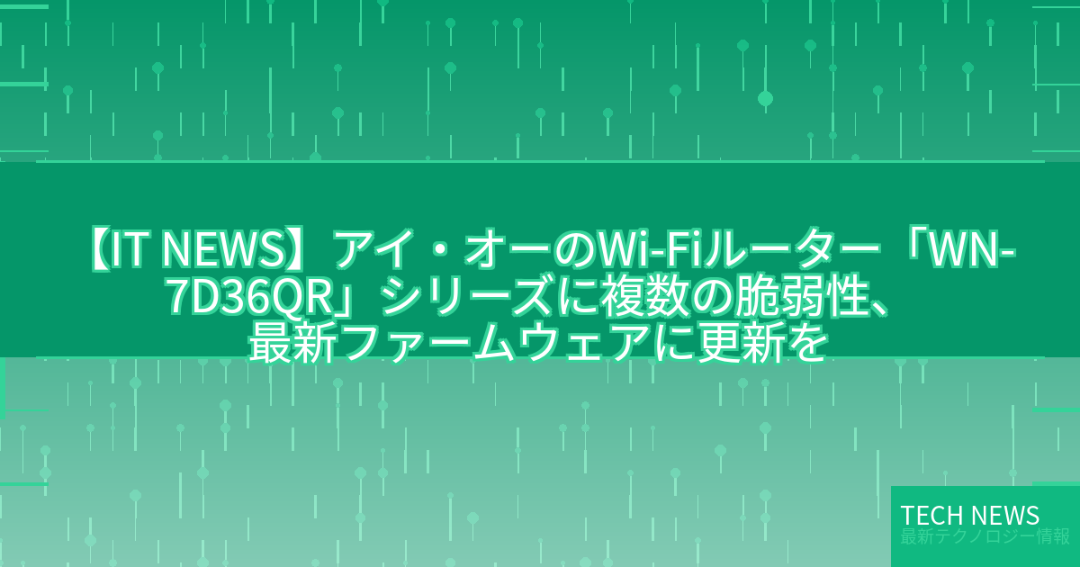 記事タイトル:アイ・オーのWi-Fiルーター「WN-7D36QR」シリーズに複数の脆弱性、最新ファームウェアに更新を