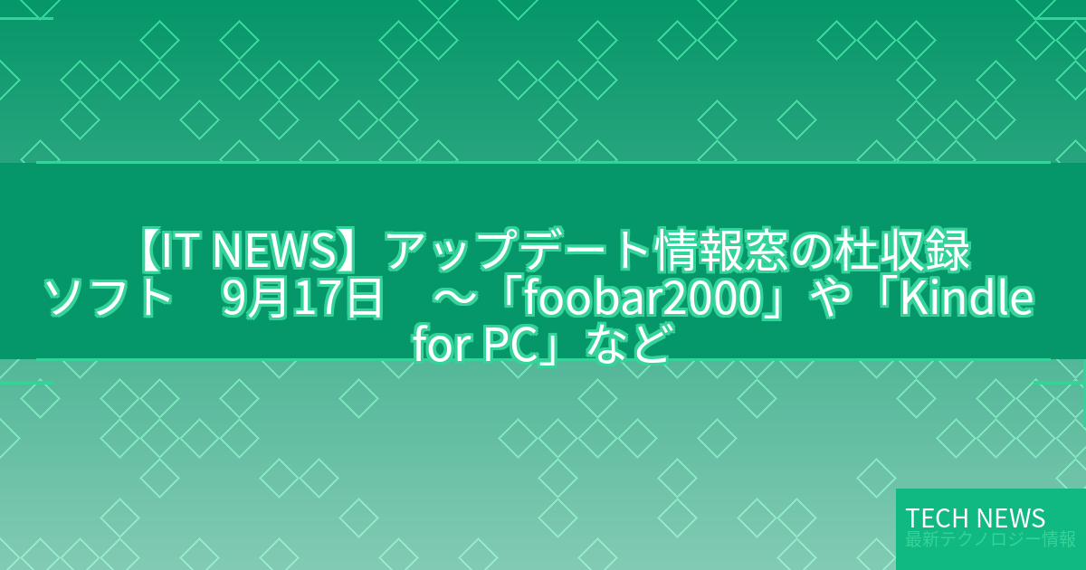 ・元記事タイトル:【アップデート情報】窓の杜収録ソフト 9月17日 ~「foobar2000」や「Kindle for PC」など