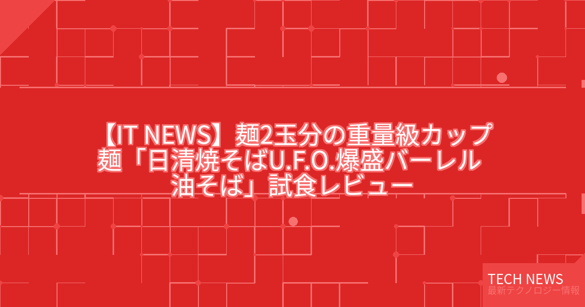 記事タイトル:麺2玉分の重量級カップ麺「日清焼そばU.F.O.爆盛バーレル 油そば」試食レビュー
