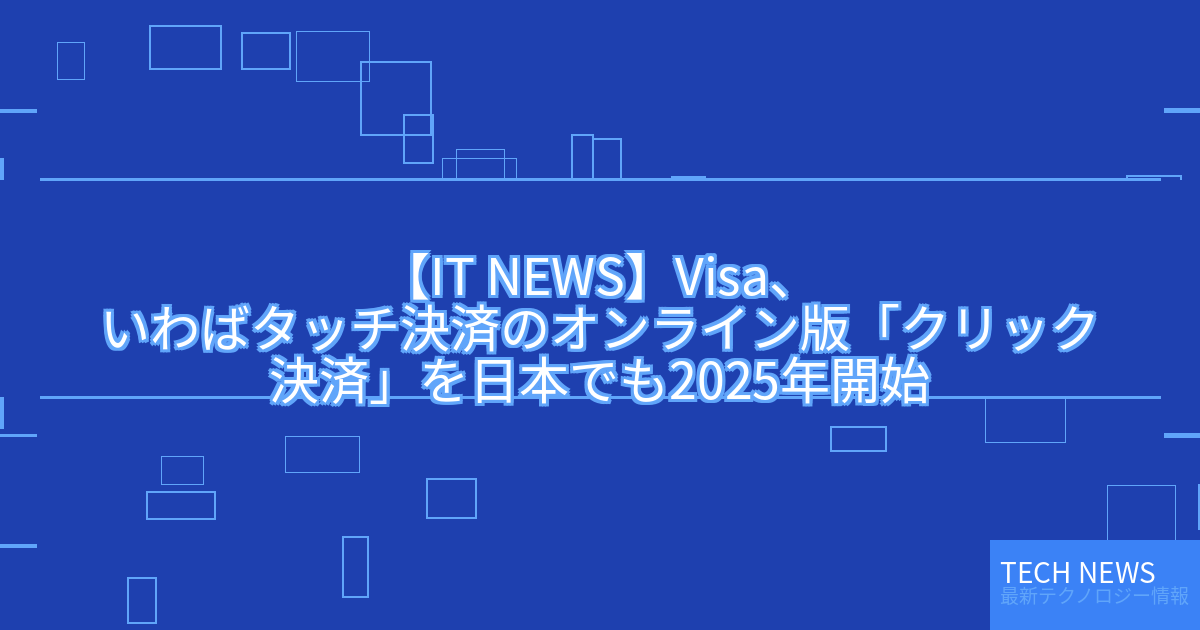 【IT NEWS】Visa、いわばタッチ決済のオンライン版「クリック決済」を日本でも2025年開始