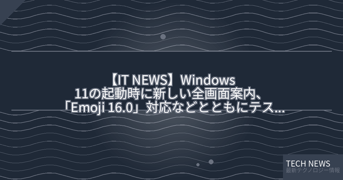 記事タイトル:Windows 11の起動時に新しい全画面案内、「Emoji 16.0」対応などとともにテスト開始/「Click to Do」には新たに「Copilot プロンプトボックス」を導入