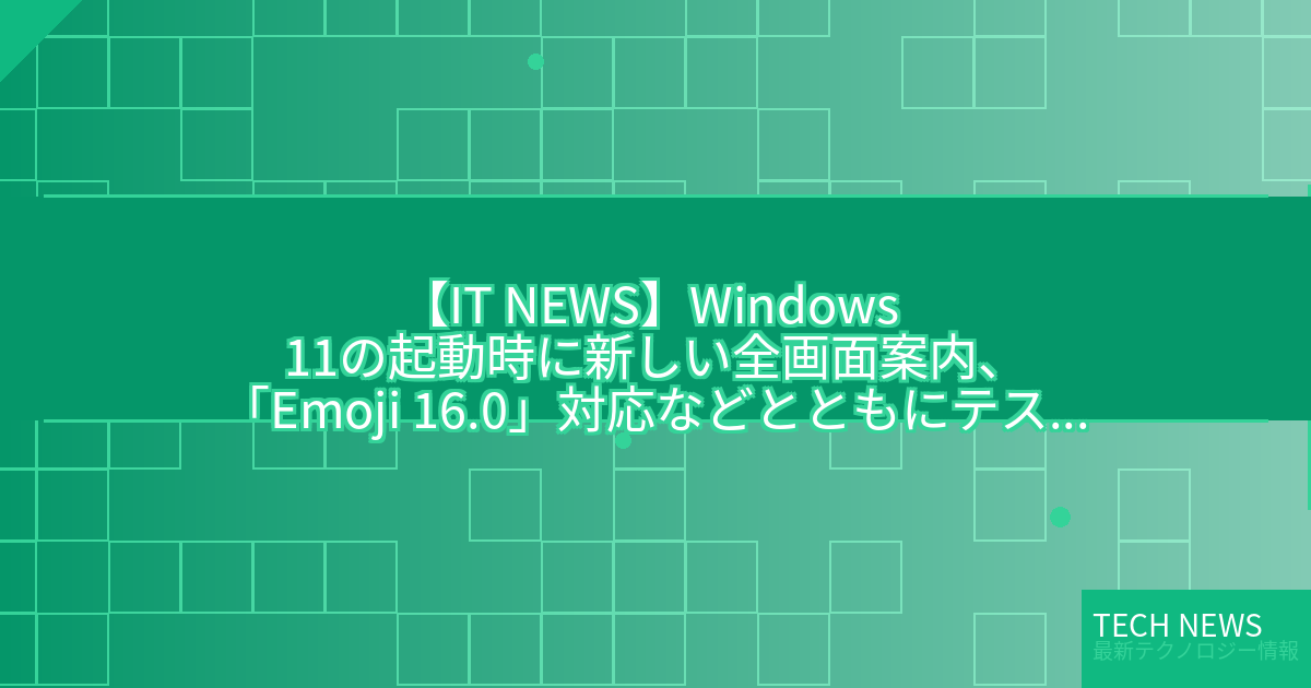 記事タイトル:Windows 11の起動時に新しい全画面案内、「Emoji 16.0」対応などとともにテスト開始/「Click to Do」には新たに「Copilot プロンプトボックス」を導入