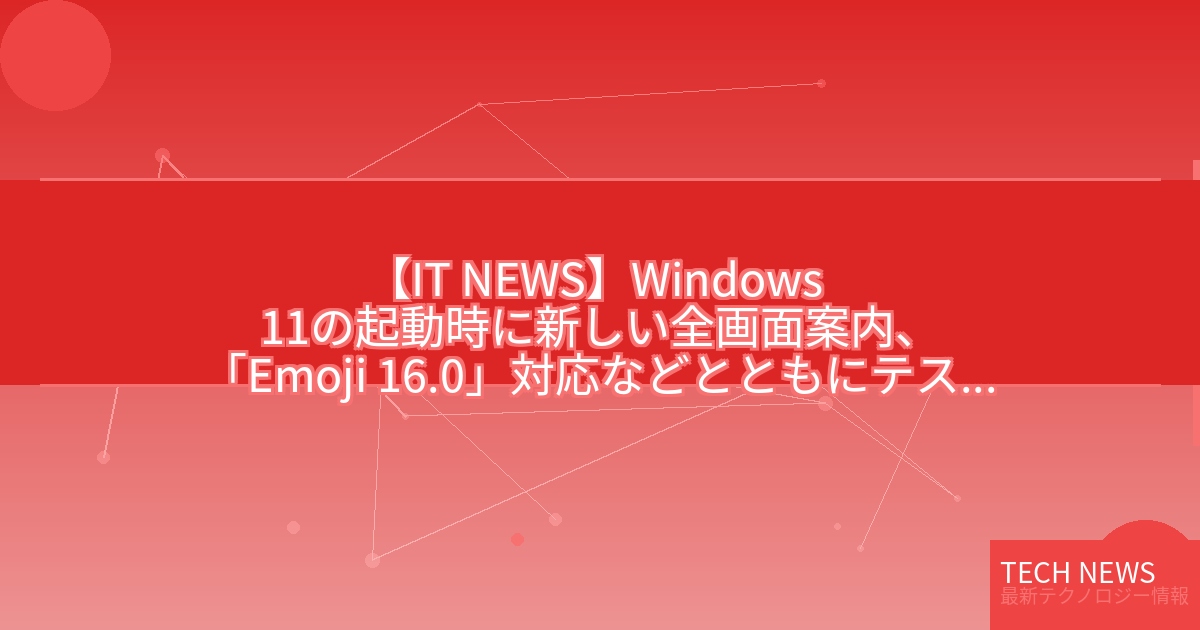 記事タイトル:Windows 11の起動時に新しい全画面案内、「Emoji 16.0」対応などとともにテスト開始/「Click to Do」には新たに「Copilot プロンプトボックス」を導入