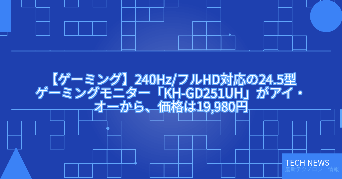 ・元記事タイトル:240Hz/フルHD対応の24.5型ゲーミングモニター「KH-GD251UH」がアイ・オーから、価格は19,980円