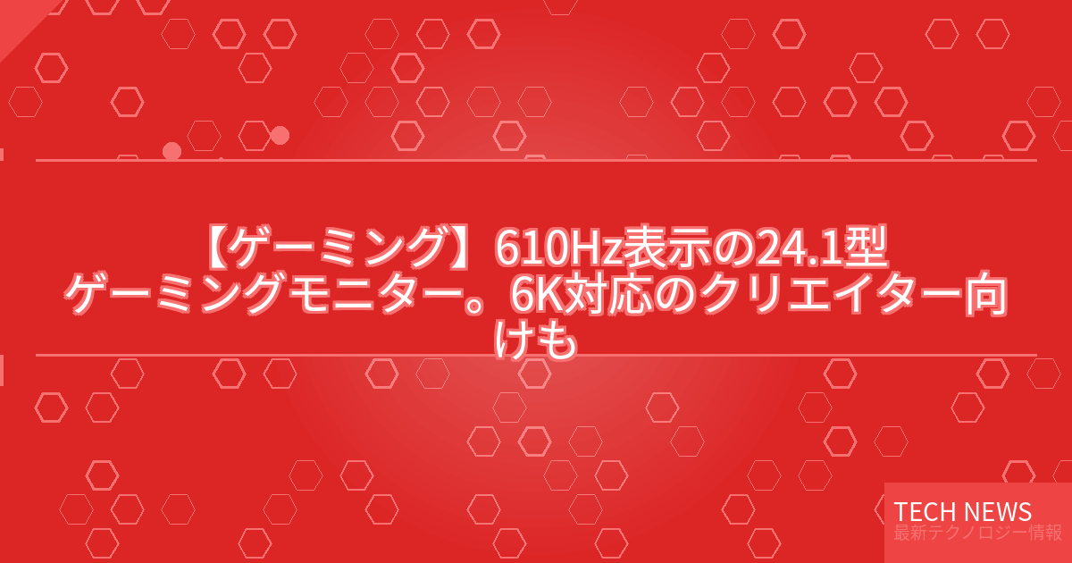 記事タイトル:610Hz表示の24.1型ゲーミングモニター。6K対応のクリエイター向けも