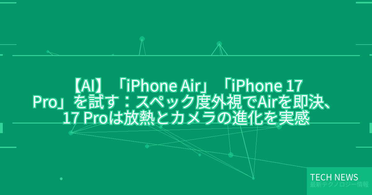 記事タイトル:「iPhone Air」「iPhone 17 Pro」を試す:スペック度外視でAirを即決、17 Proは放熱とカメラの進化を実感