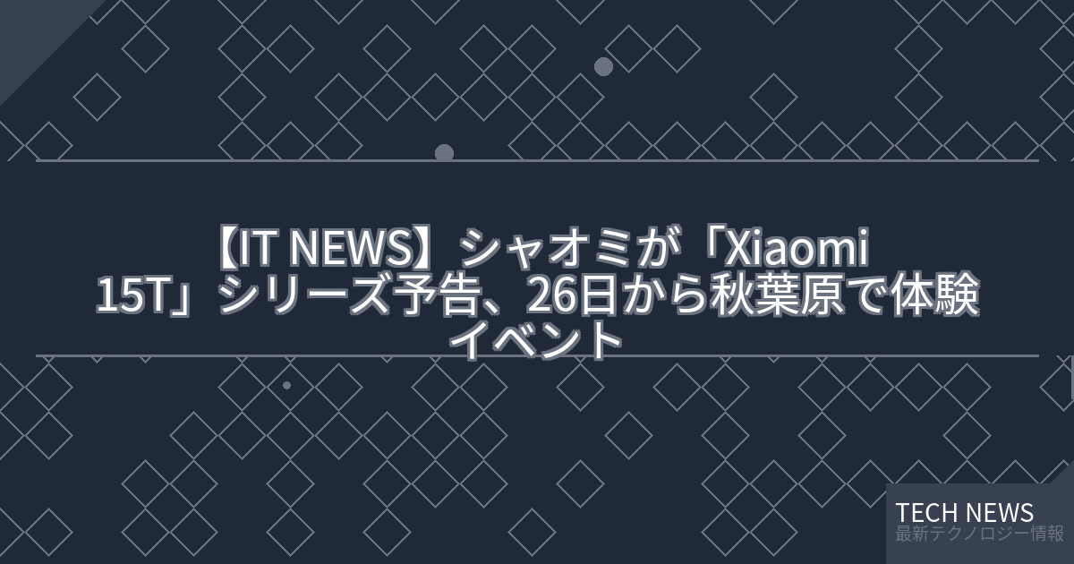 記事タイトル:シャオミが「Xiaomi 15T」シリーズ予告、26日から秋葉原で体験イベント