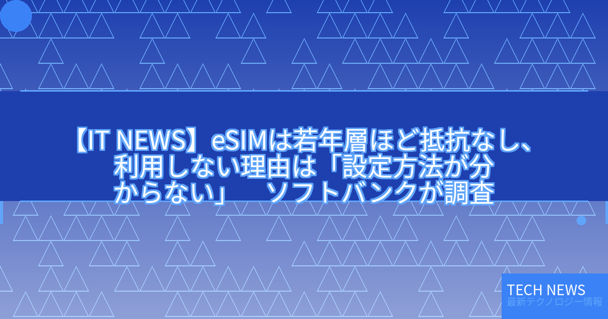 記事タイトル:eSIMは若年層ほど抵抗なし、利用しない理由は「設定方法が分からない」 ソフトバンクが調査
