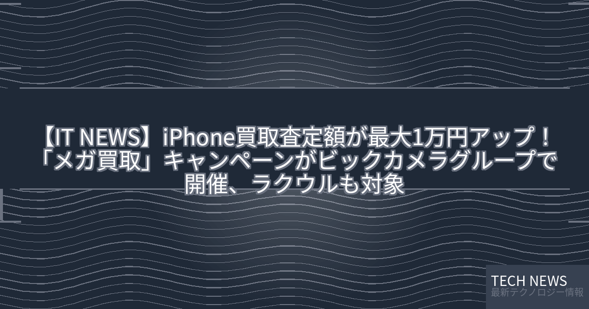 ・元記事タイトル:iPhone買取査定額が最大1万円アップ!「メガ買取」キャンペーンがビックカメラグループで開催、ラクウルも対象