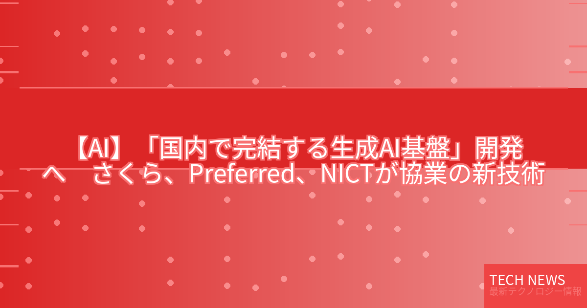 ・元記事タイトル:「国内で完結する生成AI基盤」開発へ さくら、Preferred、NICTが協業
