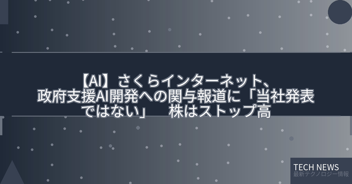 記事タイトル:さくらインターネット、政府支援AI開発への関与報道に「当社発表ではない」 株はストップ高