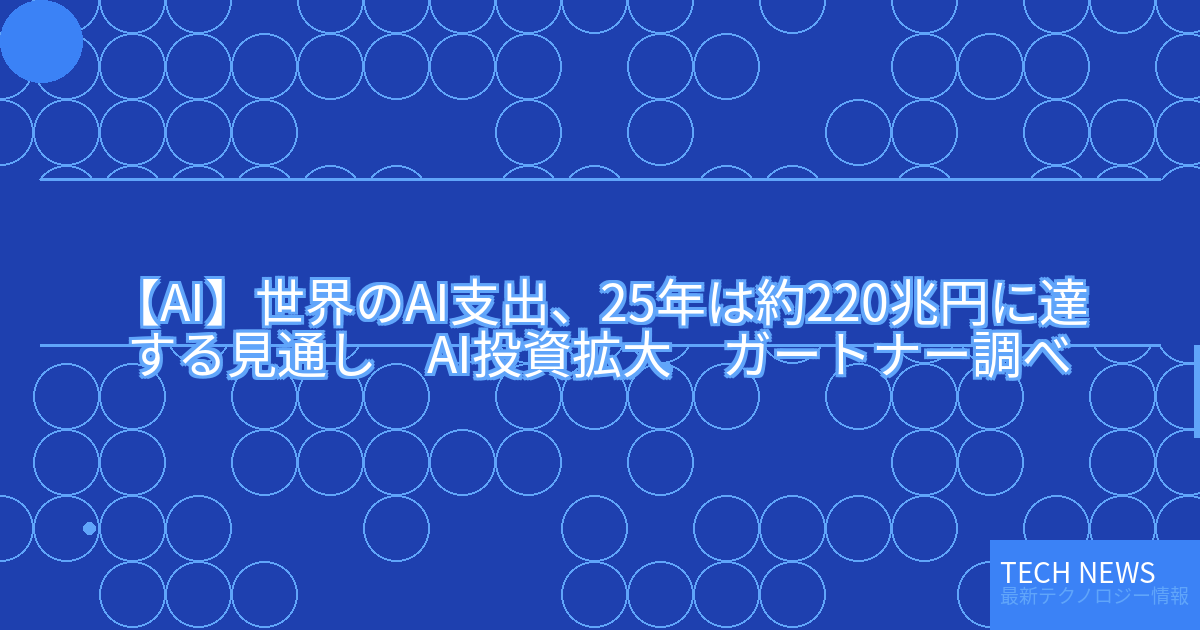 記事タイトル:世界のAI支出、25年は約220兆円に達する見通し AI投資拡大 ガートナー調べ