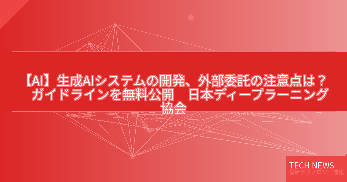 記事タイトル:生成AIシステムの開発、外部委託の注意点は? ガイドラインを無料公開 日本ディープラーニング協会