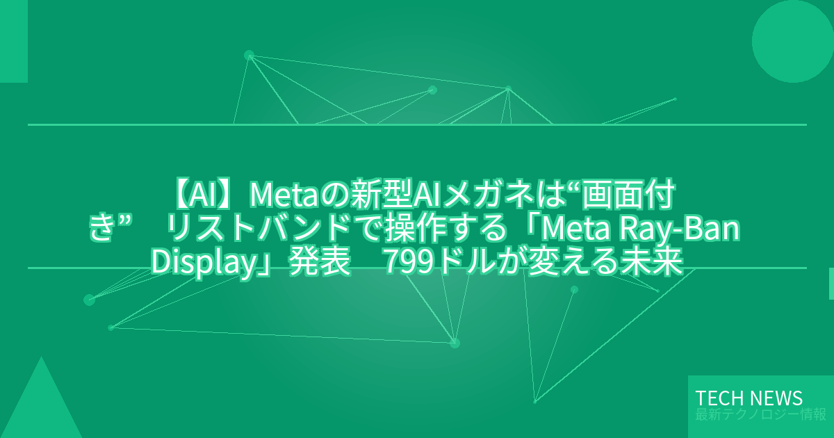記事タイトル:Metaの新型AIメガネは“画面付き” リストバンドで操作する「Meta Ray-Ban Display」発表 799ドル