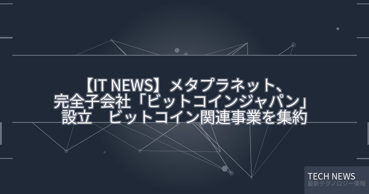 記事タイトル:メタプラネット、完全子会社「ビットコインジャパン」設立 ビットコイン関連事業を集約